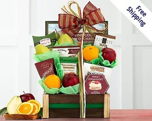 No coupon neededThis wholesome gift basket is filled with a collection of the ripest fruit and the most popular gift items.Two of each of your favorite fruits: fresh, crisp apples, creamy, mouth-watering pears and sweet, juicy oranges arrive at their peak ripeness.
