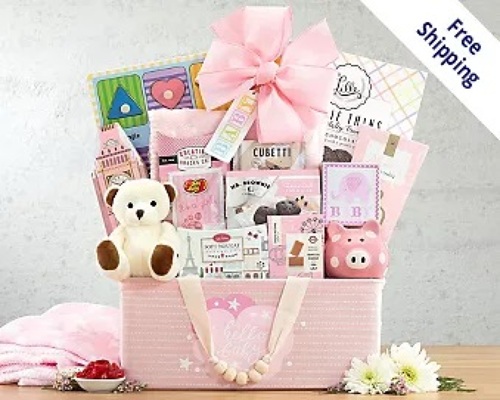 No coupon neededPerfect for a baby shower or to welcome mom and her new baby back home from the hospital. A soft plush bear, blanket, wooden puzzle, piggy bank, pomegranate candy, Ahmad English tea, jelly beans, walnut cookies and more will get them off to a good start.